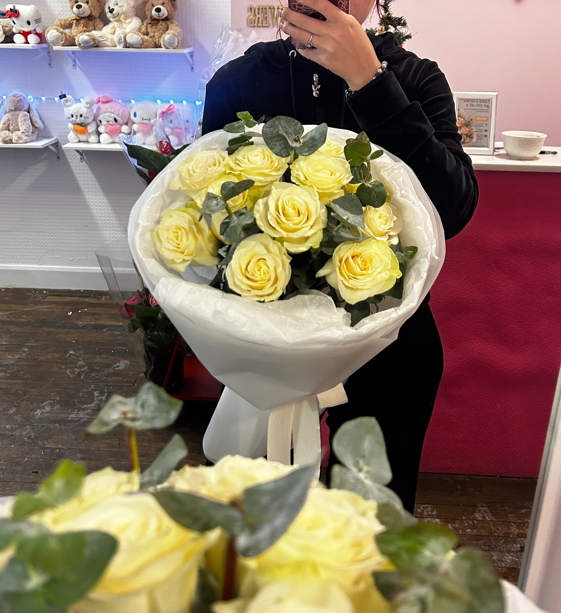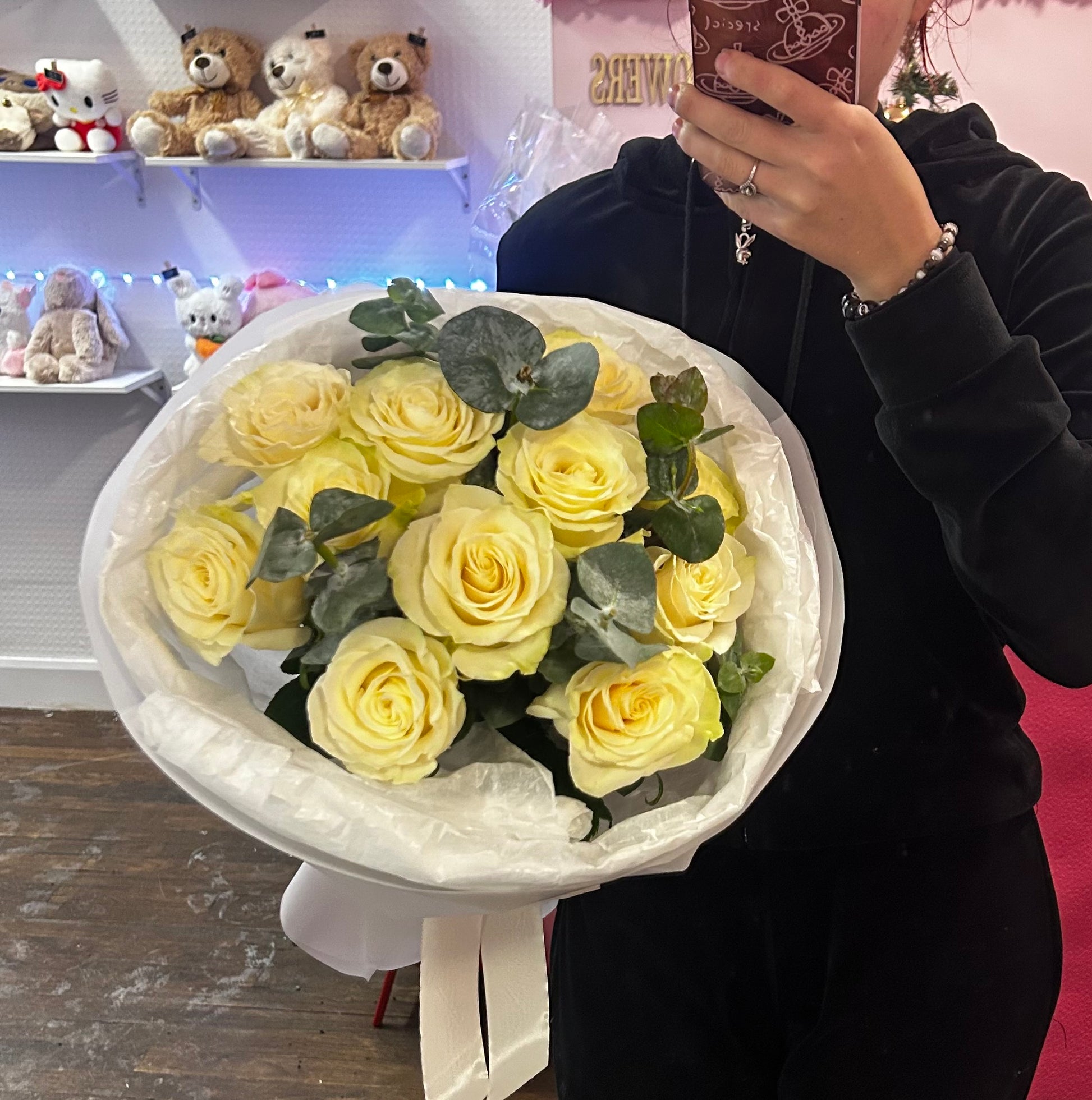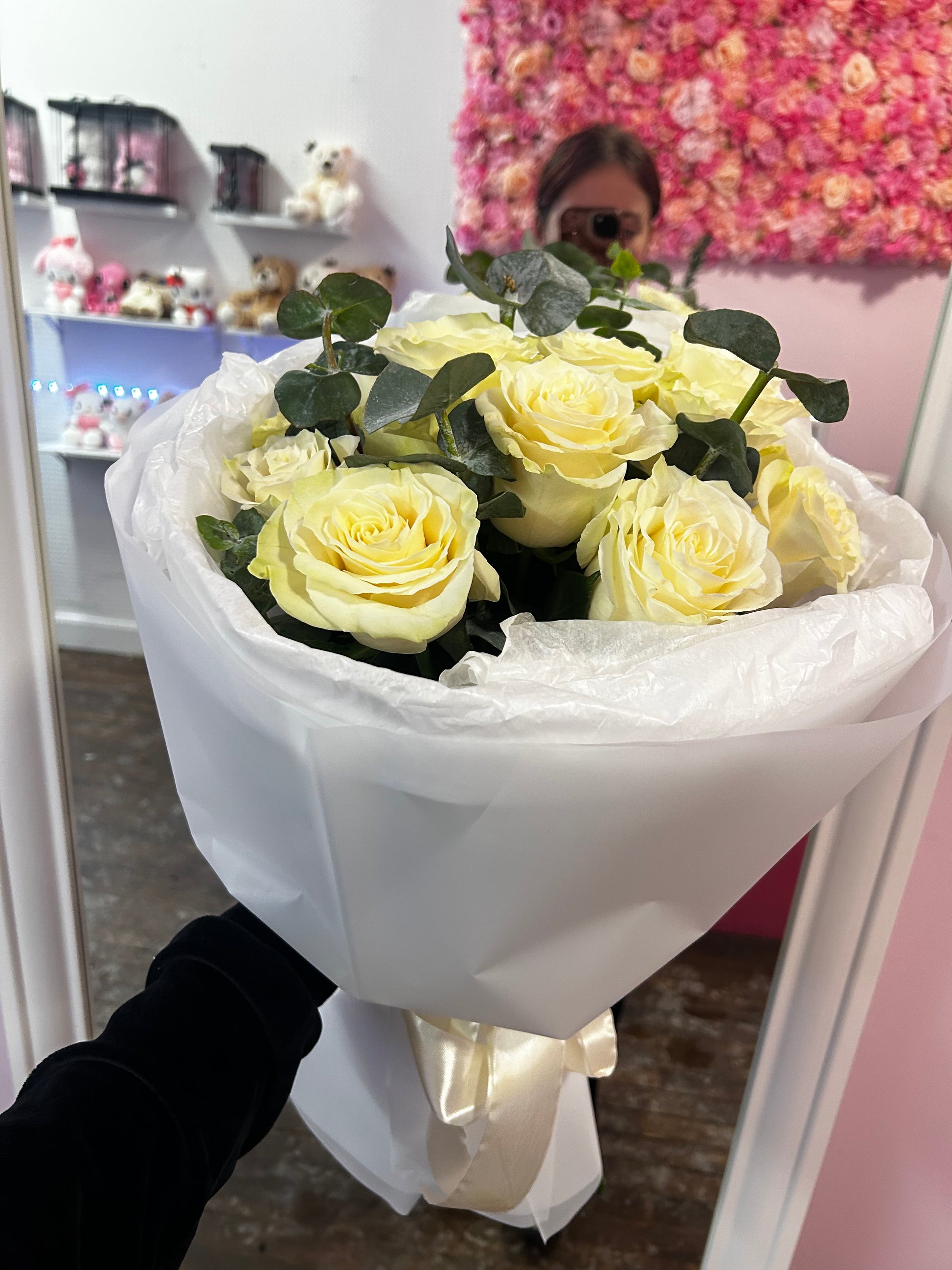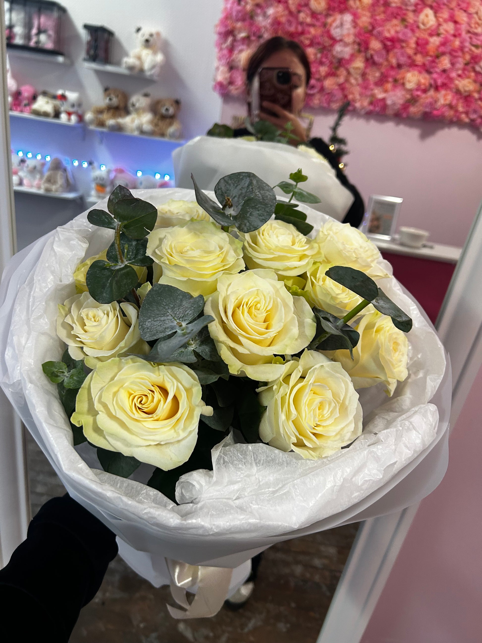 Букет «Ivory Whisper» — это элегантное и вневременное произведение искусства, состоящее из 11 кремово-белых роз, тщательно расположенных таким образом, чтобы подчеркнуть их мягкие, бархатистые лепестки. Нежные веточки эвкалипта добавляют свежести, воздушности и тонкого натурального аромата, идеально дополняя нежный оттенок роз. Завернутый в белоснежную бумагу, этот букет олицетворяет чистоту, тепло и изысканную красоту — идеальный выбор для дней рождения, годовщин или трогательных моментов, когда слов недостаточно.