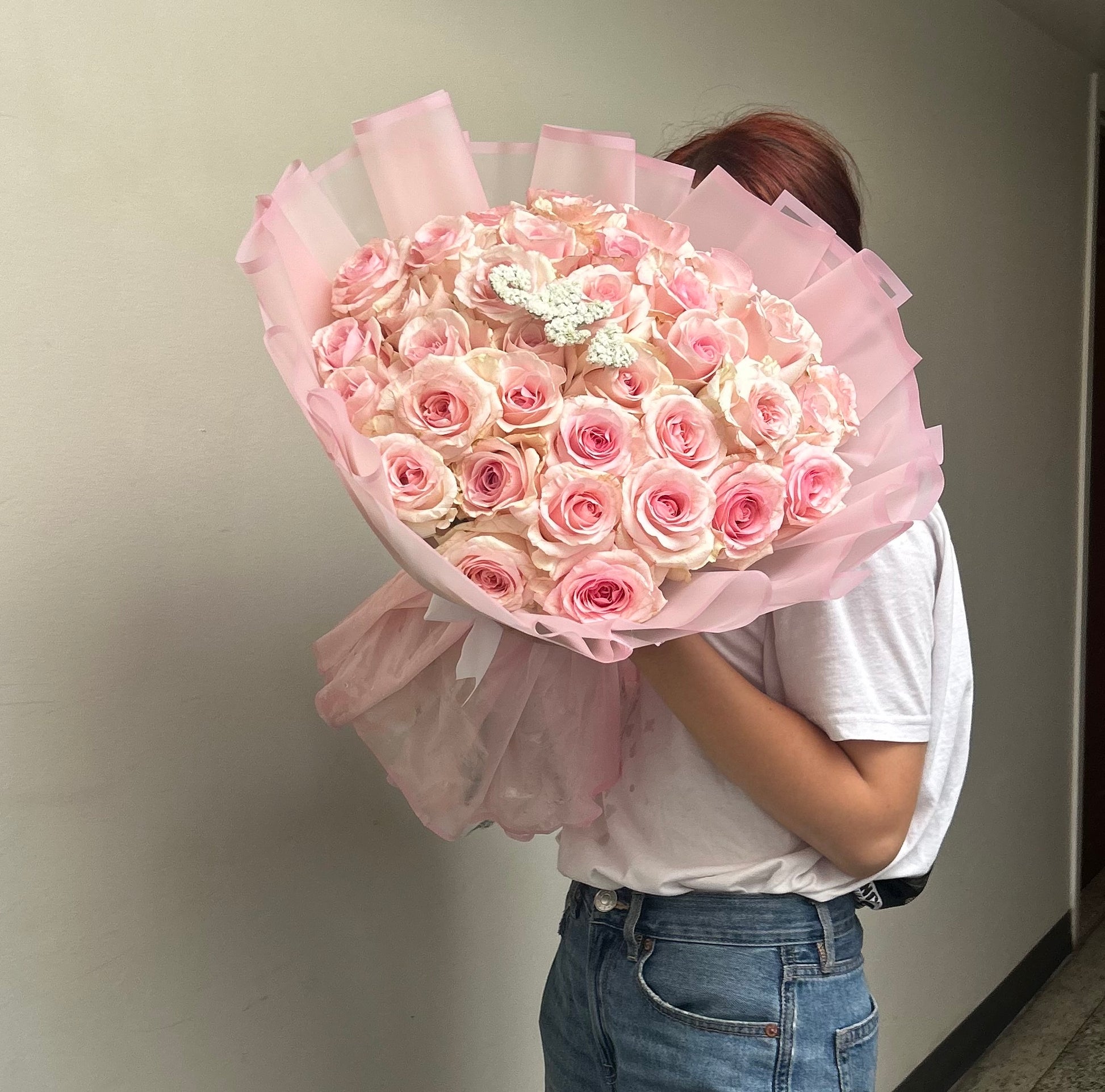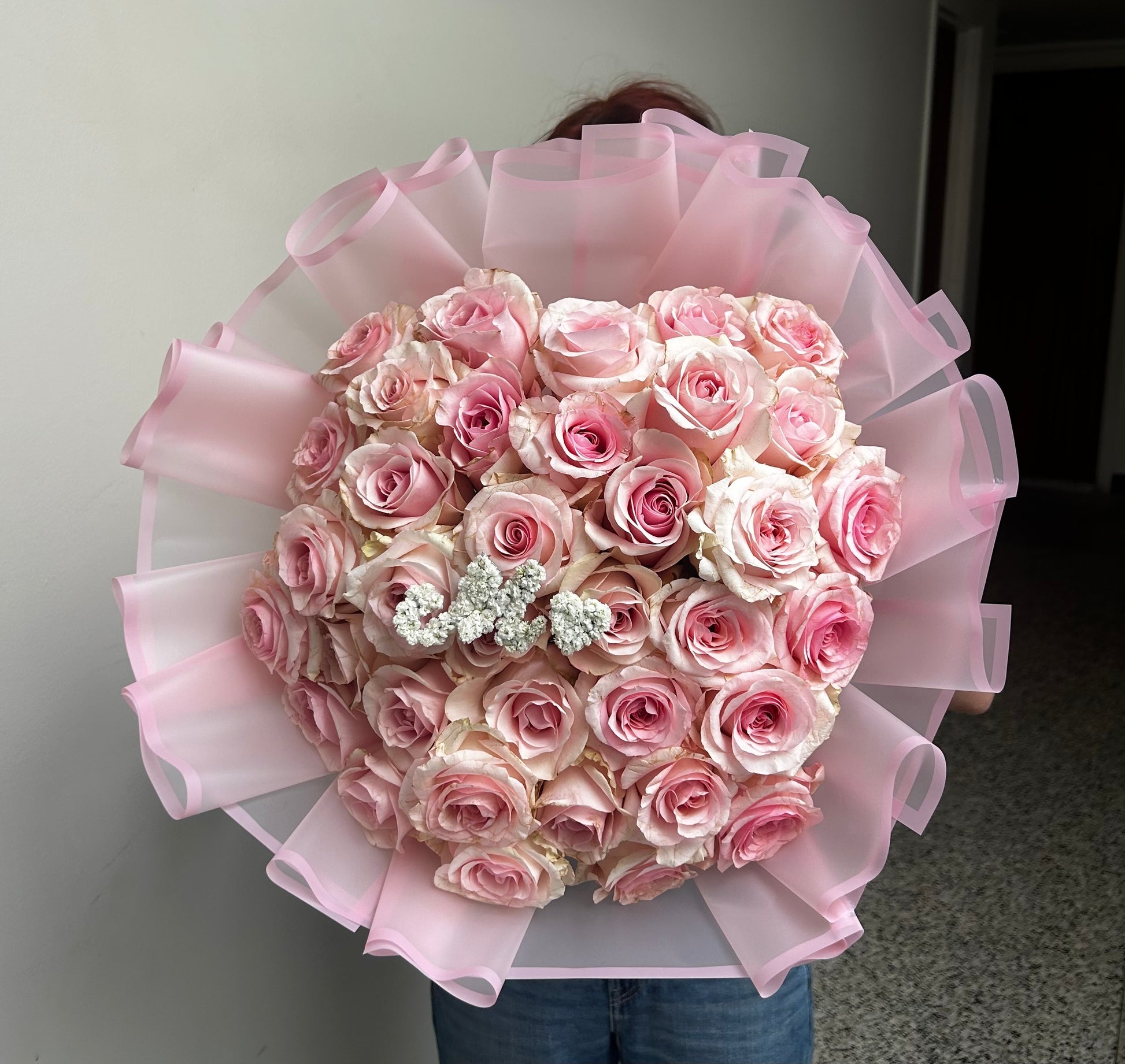 A luxurious bouquet of 36 delicate pink roses, elegantly wrapped in soft pastel tones. Highlighted with a custom letter of your choice made from gypsophila, this bouquet is both romantic and unique. Perfect for birthdays, anniversaries, or any occasion where you want to make someone feel truly special.